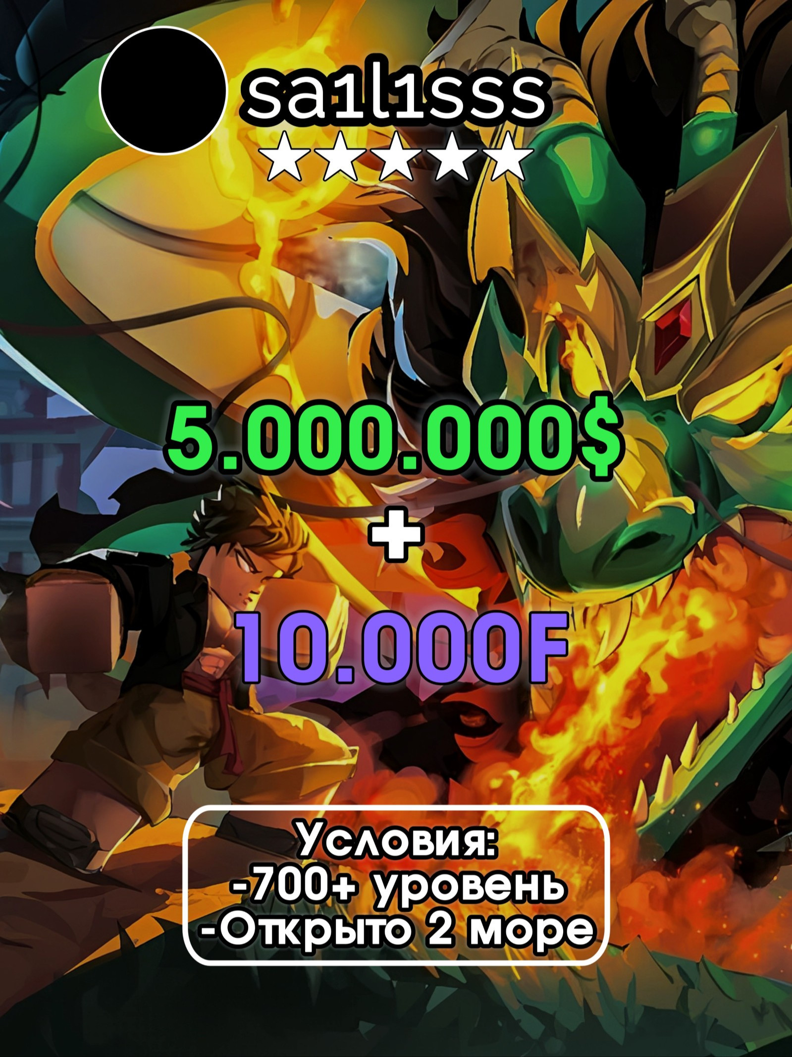 🔥 Вы получите 5.000.000 белли и 10.000 фрагментов на ваш аккаунт