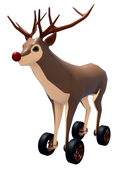 Car Dealership Tycoon / ТранспортThe Reindeer Car is joke vehicle consisting of a literal reindeer on wheels. It is a Class 3 event vehicle that was added in the 2025 Xmas Week 1 Update alongside the Ford F-150 "Hoonitruck", Ford GT40 Mk I, Ford Mustang GT (S650), Lamborghini Huracán STO "Xmas Edition", Pagani Utopia "Winter Edition" and Pagani Zonda Cinque Roadster "Collector Edition" . Since the Reindeer Car is rather thin, it is prone to glitching out at high top speed. As if it wasn't already unusable, this vehicle utilises a drag chassis, being unable to turn at even medium speeds. It also has extremely poor straight-line acceleration due to its long gears, though this is easily bypassed by a simple steer to overboost your rev. And as the Brakes for it are way too strong, equiping Sports rather than Race is highly recommended if for some unknown reason you'd wanna use this thing competitively. Overall It is recommended to use other cars rather than this vehicle.