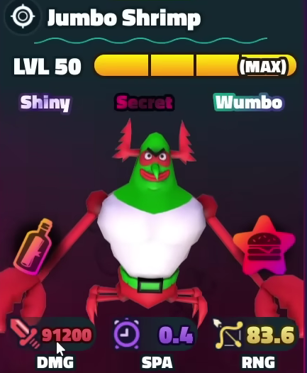SpongeBob Tower Defense / ЮнитыJumbo Shrimp это юнит с редкостью Secret в игре SpoungeBob TD