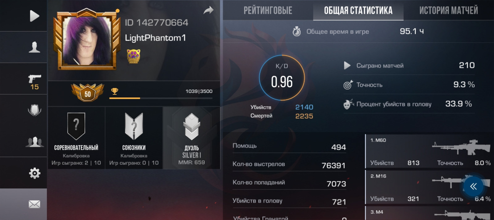 Аккаунт с кучей скинов и норм статами играю с 2023 и есть 90+ часов