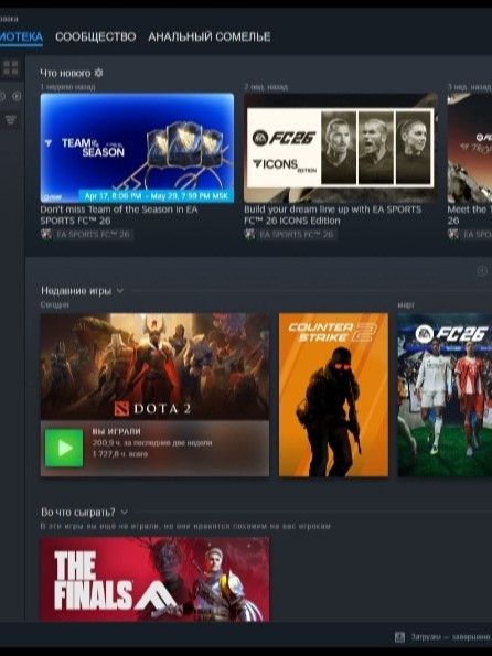 Аккаунт стим с фифа 2026 ультимейт издание, дота 2 1700 часов, кс2 4000 часов с прайм