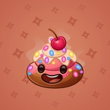 Name: Happy Brownie #40835, Model: Cherry Cake 3%, Backdrop: Coral Red 1.5%, Symbol: Shuriken 0.5%, Quantity: 198 035/264 231 issued