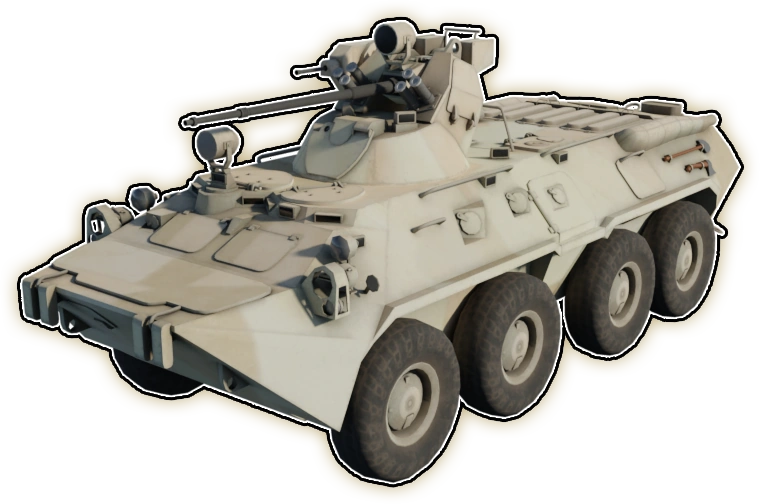 War Tycoon / ТранспортБТР-80 — это транспортное средство, которое можно получить на 20-й день ежедневных наград. Оно примечательно тем, что может перевозить войска и вести бой с пехотой. БТР-80 обладает высоким уровнем прочности, приличной скоростью и впечатляющим набором функций, которые делают его подходящим для выполнения множества задач, помимо его основного назначения — наступательных операций.
